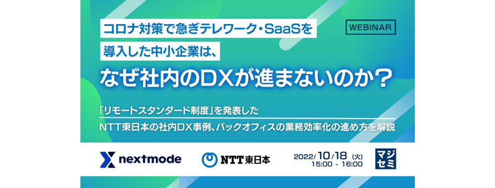 NTT東日本のDX推進をサポートしてきたネクストモードの取り組み、中小企業のバックオフィス業務効率化ソリューションもご紹介いたします。